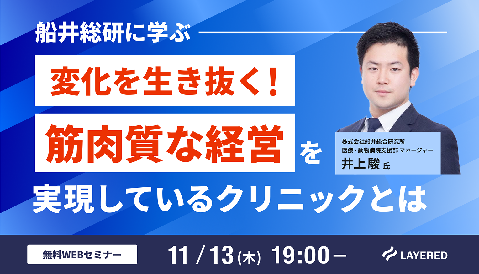 イベント・セミナー11/13(木)19:00~ 「船井総研に学ぶ 変化を生き抜く!”筋肉質な経営”を実現しているクリニックとは」