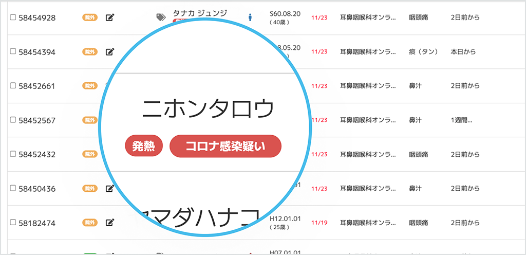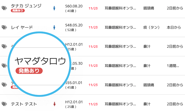 - 受診導線や時間分けが必要な患者を識別できます