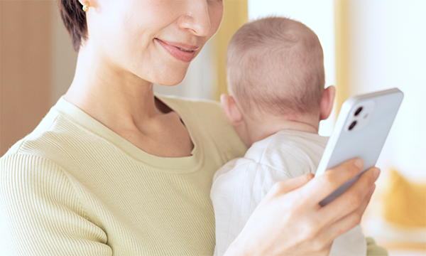 - 子どもを抱えて紙の問診票に記入する保護者の負担軽減