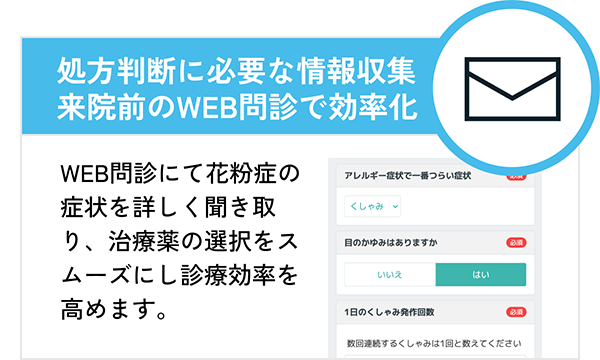 事前問診ができないことで診察効率が落ちやすいオンライン診療特有の課題を解決します。