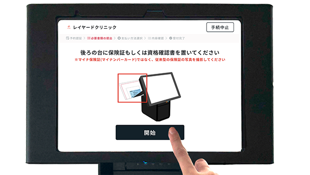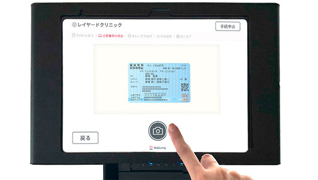 保険証をはじめ、医療証などの必要書類を無人受付端末で撮影し、登録します。