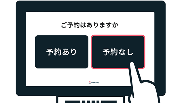無人受付端末に表示される最初の画面で「予約なし」を選択します。