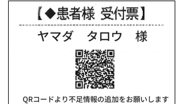 端末付属のレシートプリンターで患者用受付票を自動印刷。WEB問診などの不足情報があれば患者が二次元コードから確認・追加できます。