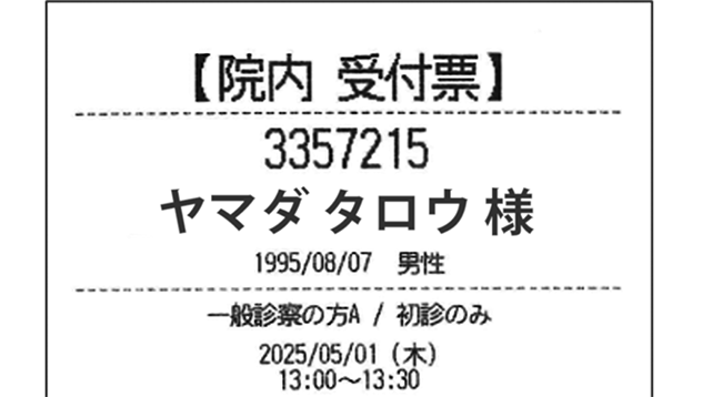 院内受付票も同時に自動印刷され、患者の受付が完了したことを知らせます。