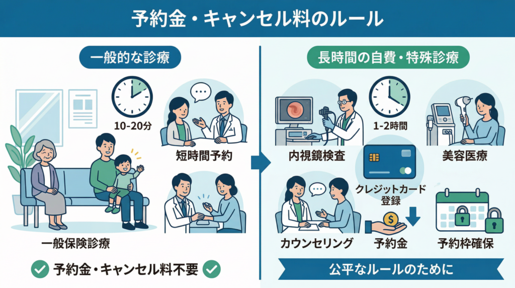 ただし、保険診療全般にキャンセル料を設定すると、患者さんからのクレームにつながる可能性が高いため注意が必要です。あくまで「予約時間をしっかり確保している一部の診療」に限定して導入することが現実的な方法といえるでしょう。