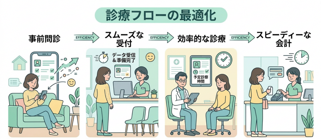 予約枠や受付の調整に加えて、来院から会計までの一連の流れを短縮する取り組みも重要です。その中でも有効なのが事前問診の活用です。