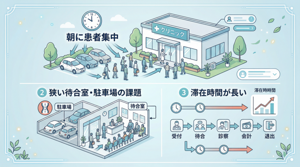 待合室や駐車場が狭いクリニックで患者滞在時間を減らすための工夫とは