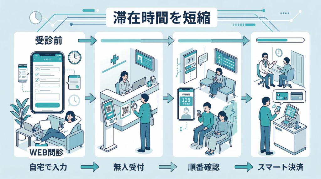 ── 診察後の会計待ちも滞在時間に影響するのでしょうか?
