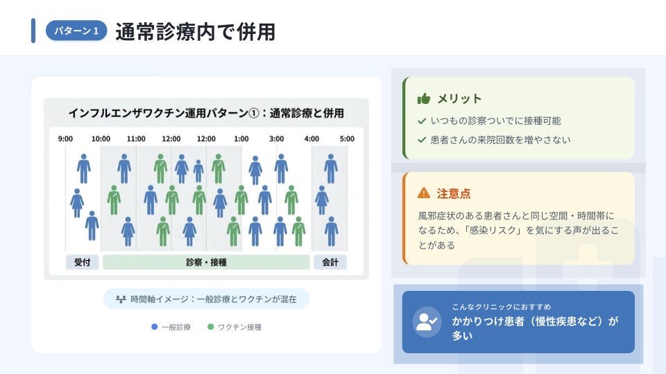 パターン① 通常の診察時間内で一般診療とあわせてワクチン接種も行う方法